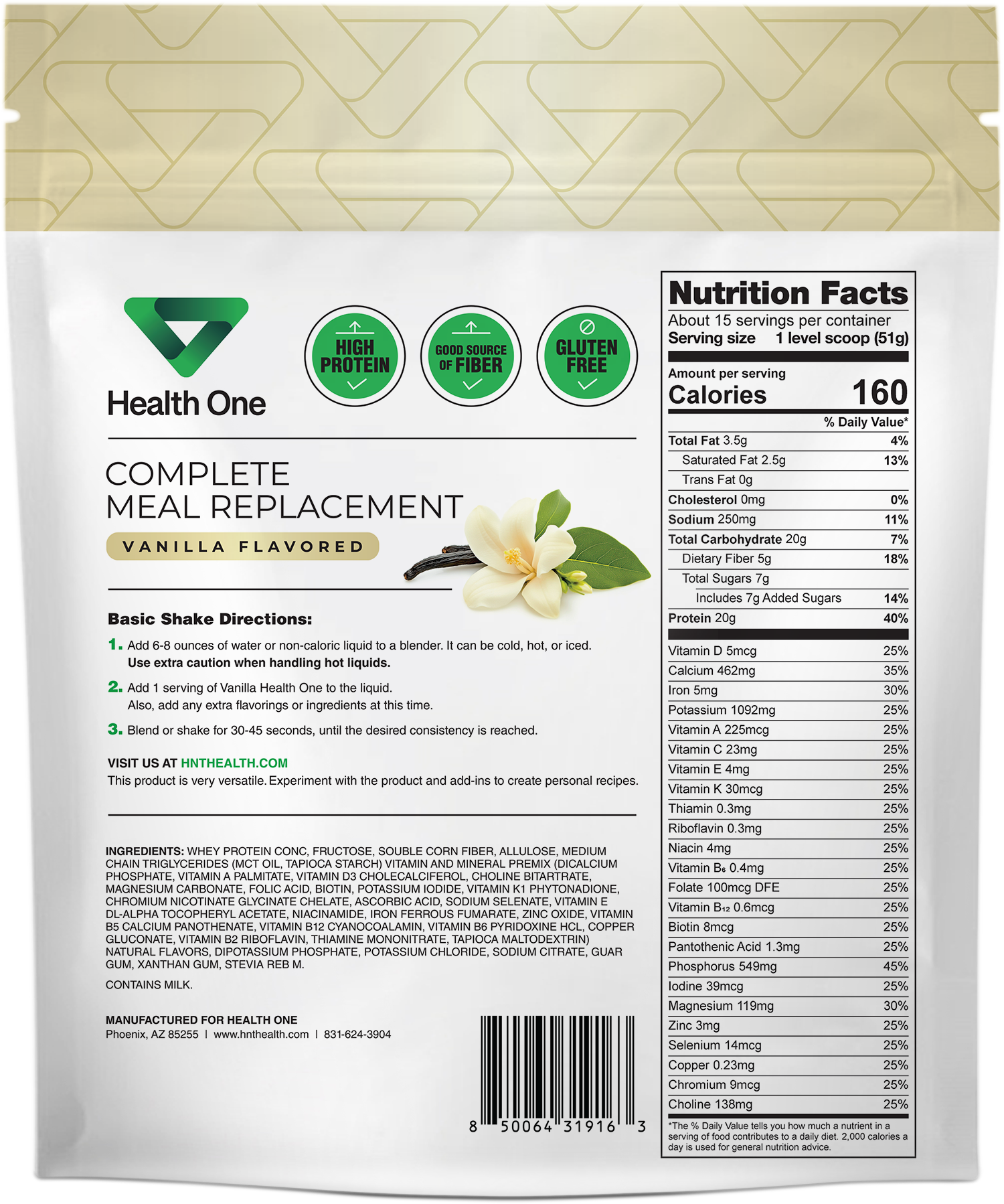 Experience the incredible versatility of Health One Vanilla. Enjoy it as a standalone shake for a classic treat, or get creative by adding extracts, fruits, veggies, or peanut butter powders to customize your blend. With Health One Vanilla, the possibilities are endless, making it the perfect choice for those who love to experiment in the kitchen while maintaining their health goals.